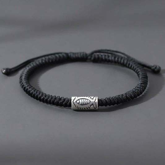 Buddha Stones Tibet Koi Fish Wealth Black String Bracelet