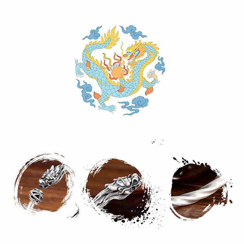 Buddha Stones 999 Sterling Silver Year of the Dragon Luck Strength Metal Cuff Bracelet Bangle