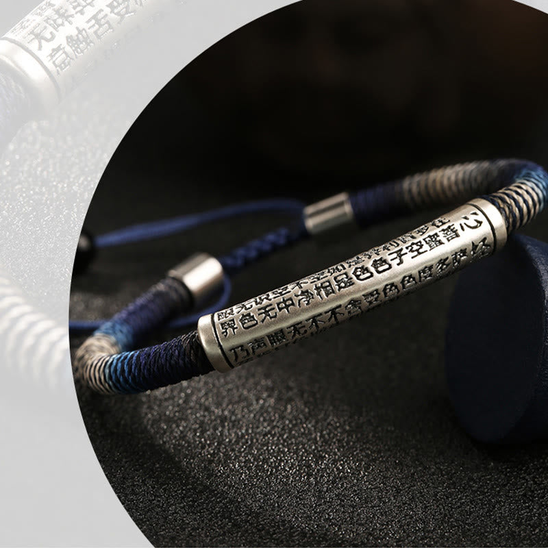 Buddha Stones 999 Sterling Silver Heart Sutra Calm Handmade Braided Bracelet