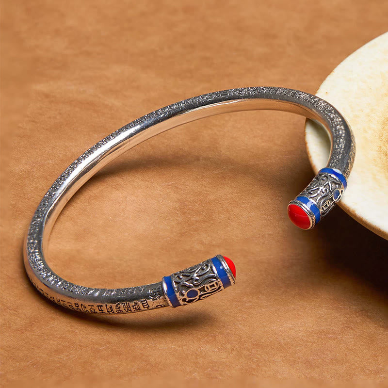 Buddha Stones Heart Sutra Carved Copper Coins Healing Bracelet Bangle