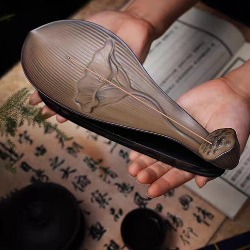 Buddha Stones Lotus Pod Zen Healing Brown Ceramic Stick Incense Burner Decoration