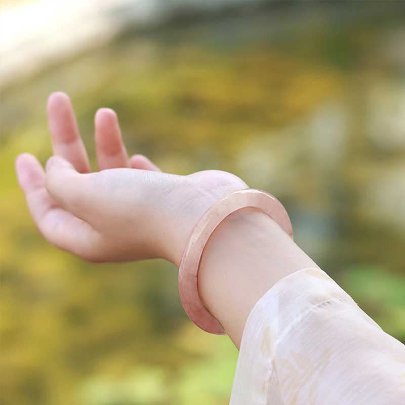 Buddha Stones Pink Golden Silk Jade Wealth Luck Bracelet Bangle