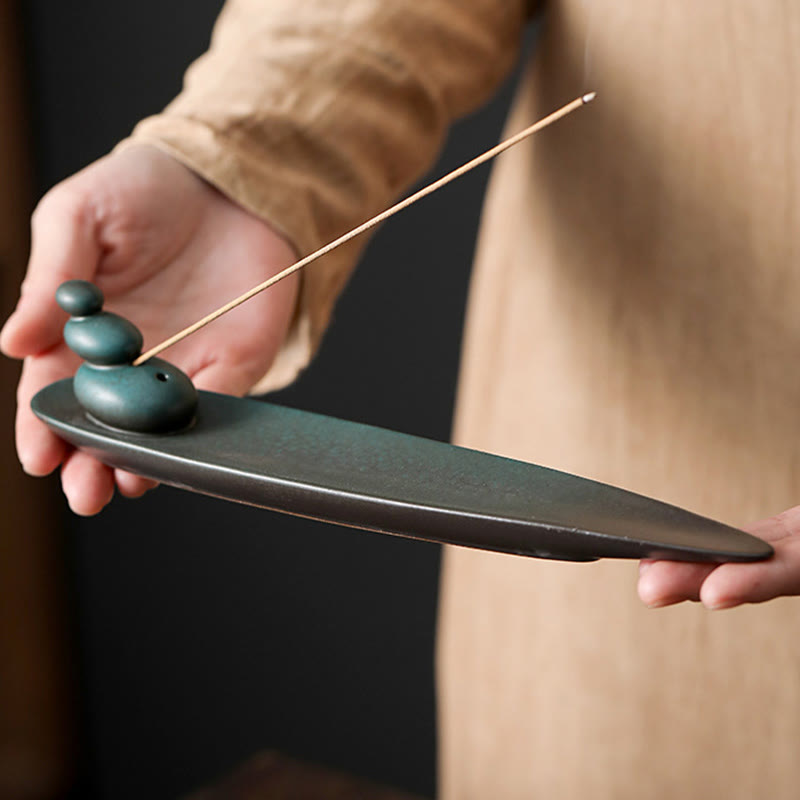 Buddha Stones Three Stones Waves Butterfly Bamboo Healing Ceramic Stick Incense Burner Decoration