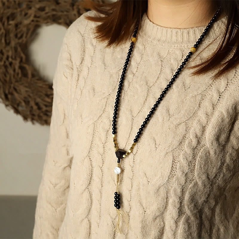 - Material: Black Onyx, Three-eyed Dzi Bead, Ebony Wood, Tiger Eye, Copper, Sterling Silver
