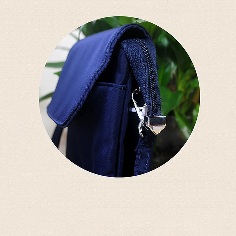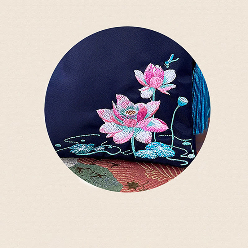 Buddha Stones Waterproof Handmade Embroidered Lotus Flowers Crossbody Bag Shoulder Bag Cellphone Bag
