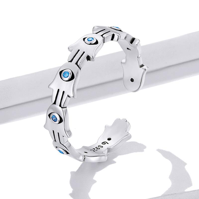 Buddha Stones 925 Sterling Silver Hamsa Symbol Zircon Adjustable Ring