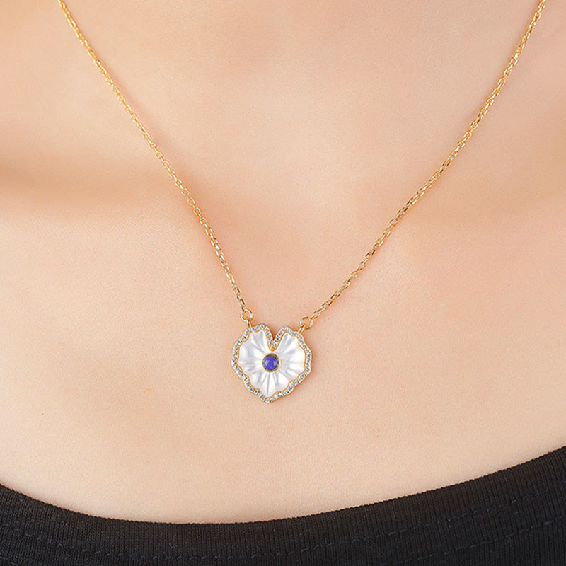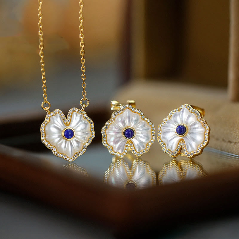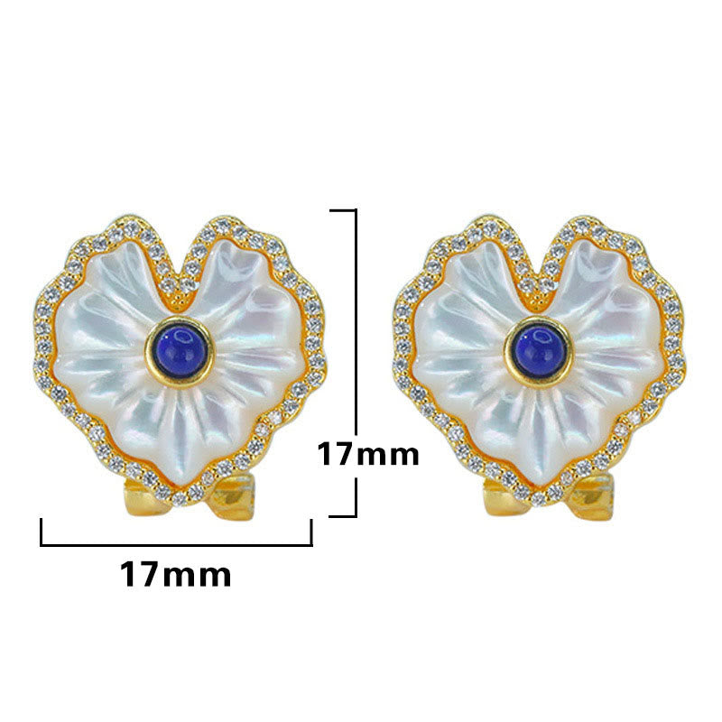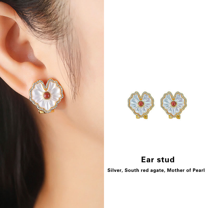 Buddha Stones 925 Sterling Silver Love Heart Tridacna Stone Red Agate Lazurite Blessing Earrings Necklace Jewelry Set