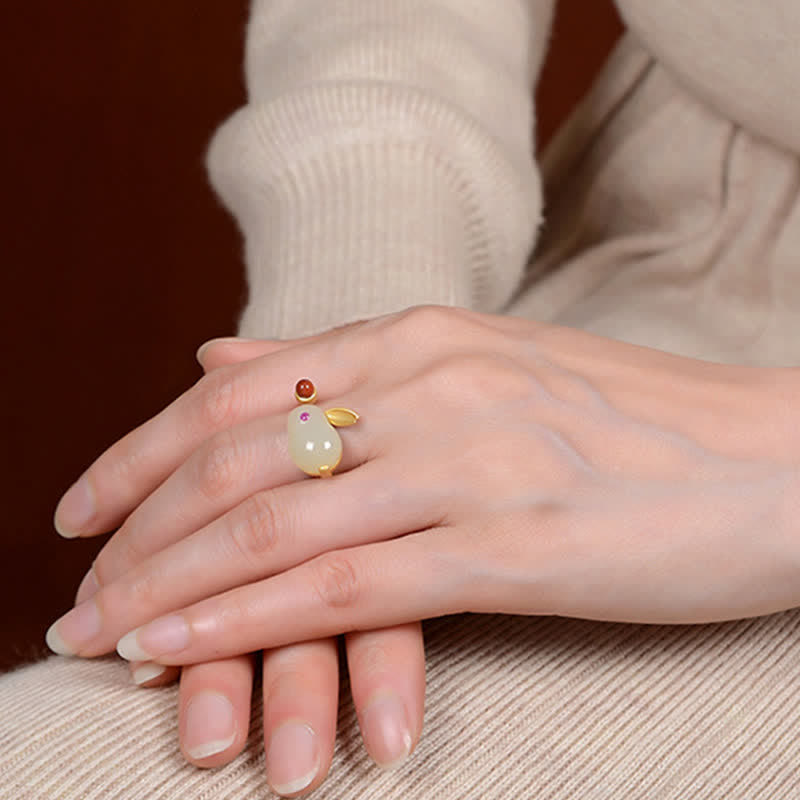 Buddha Stones 925 Sterling Silver Year of the Rabbit Hetian Jade Luck Ring Earrings Necklace Pendant