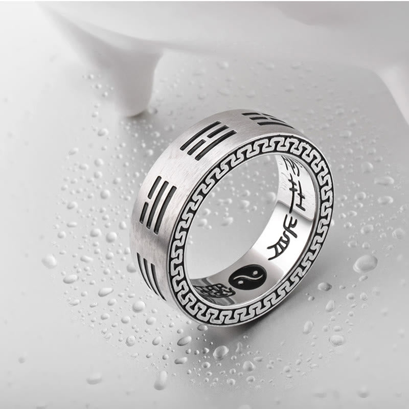 Buddha Stones Bagua Yin Yang Taoist Nine-Character Mantra Titanium Steel Harmony Ring