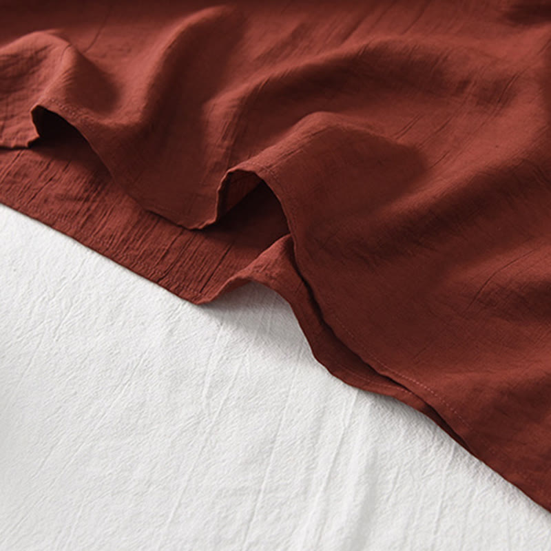 Buddha Stones Plain Cheongsam Lace-Up Design Cotton Linen Short Sleeve Midi Dress