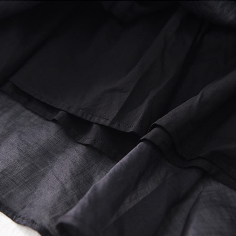 Buddha Stones Plain Irregular Hem Short Sleeve Cotton Linen Maxi Dress