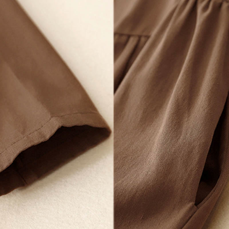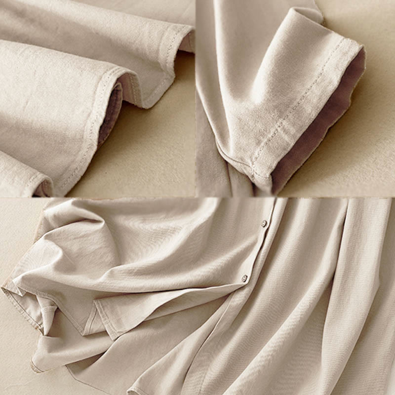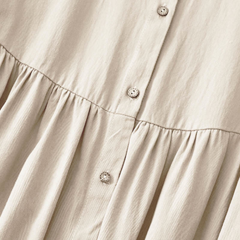 Buddha Stones Commute Long Sleeve Pure Color Button Design Lapel Cotton Midi Dress