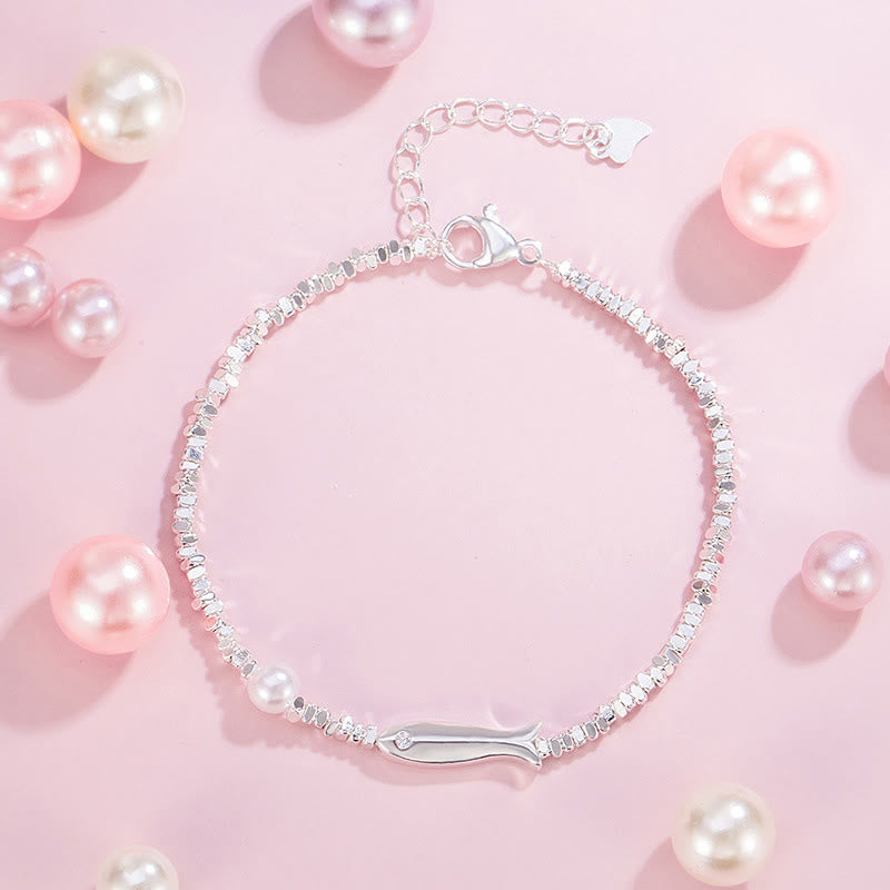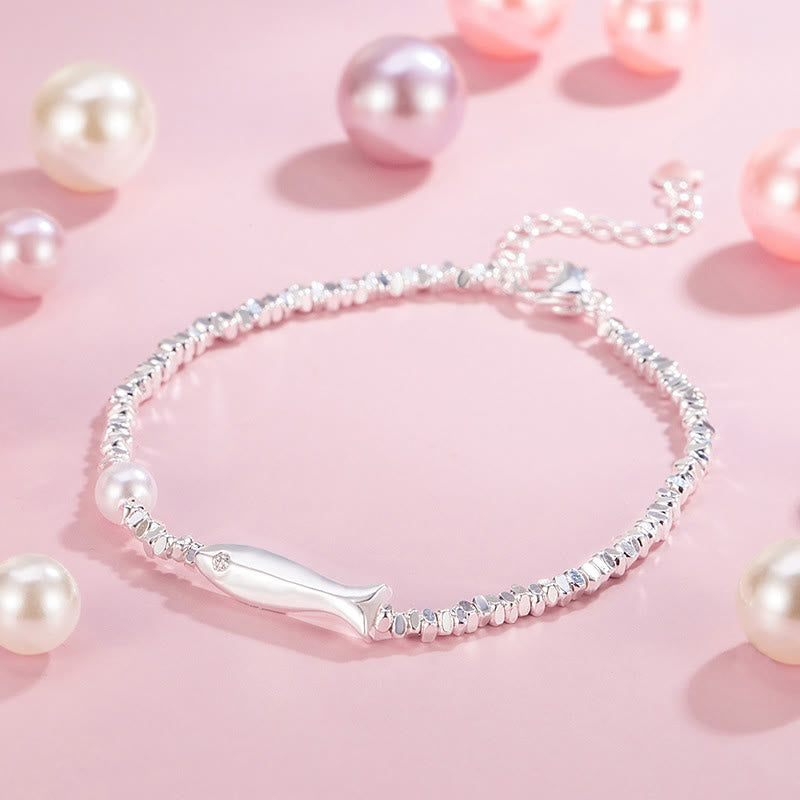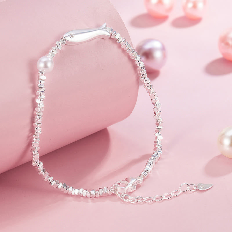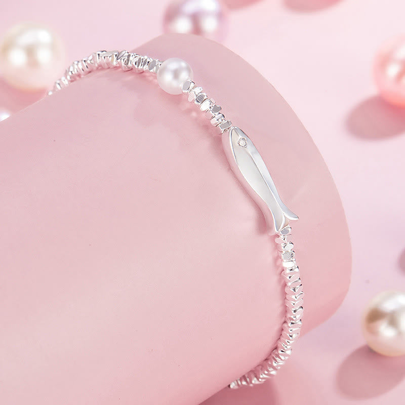 Buddha Stones Copper Plated Silver Koi Fish Pearl Luck Bracelet