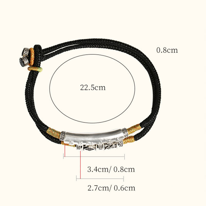 Buddha Stones Dragon Knot Sterling Silver Om Mani Padme Hum Double Hand Woven Bracelet