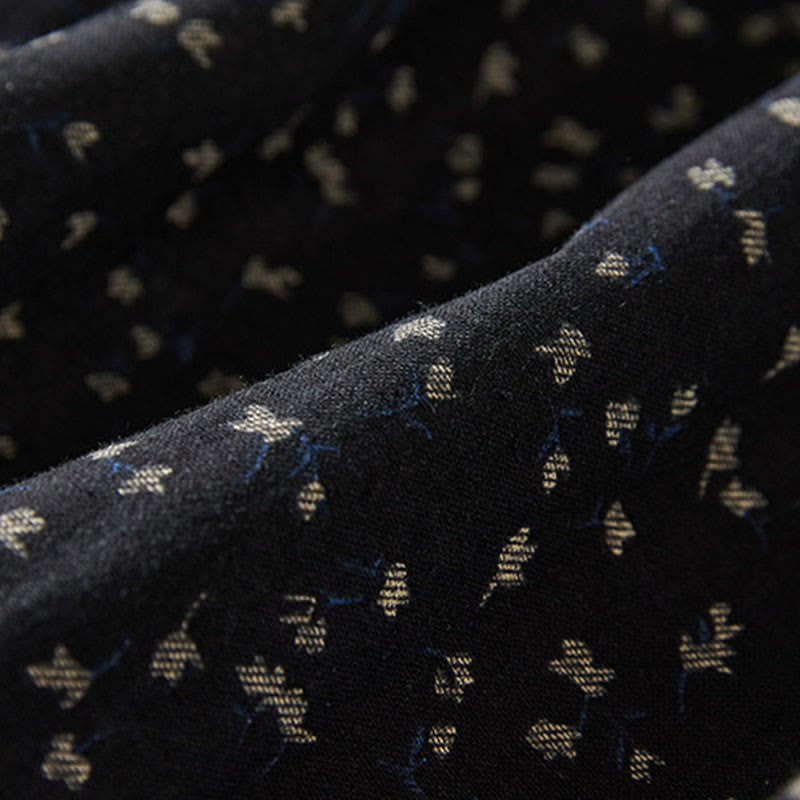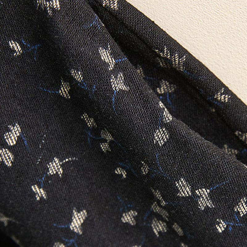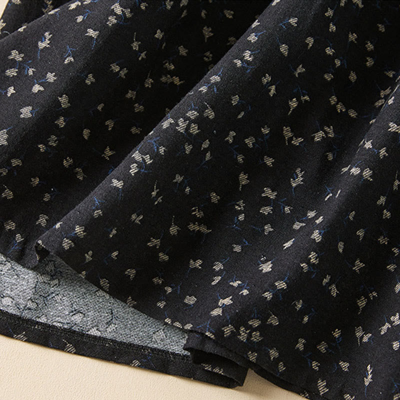 Buddha Stones Printing Buttons Lace Lapel Design Cotton Linen Long Sleeve Midi Dress With Pockets