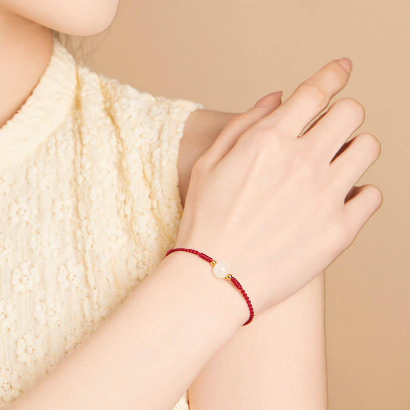 Buddha Stones Handcrafted Round Jade Lucky Bead Prosperity Braided Bracelet