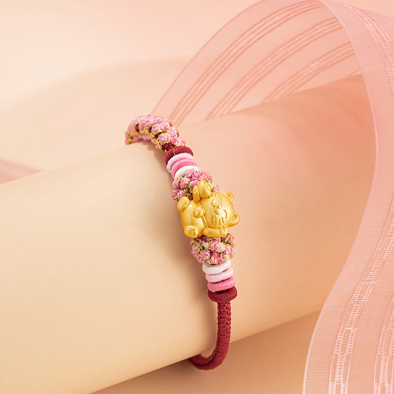Buddha Stones Handmade 999 Sterling Silver Fortune Cat Ingot Peach Blossom Luck Red Rope Bracelet