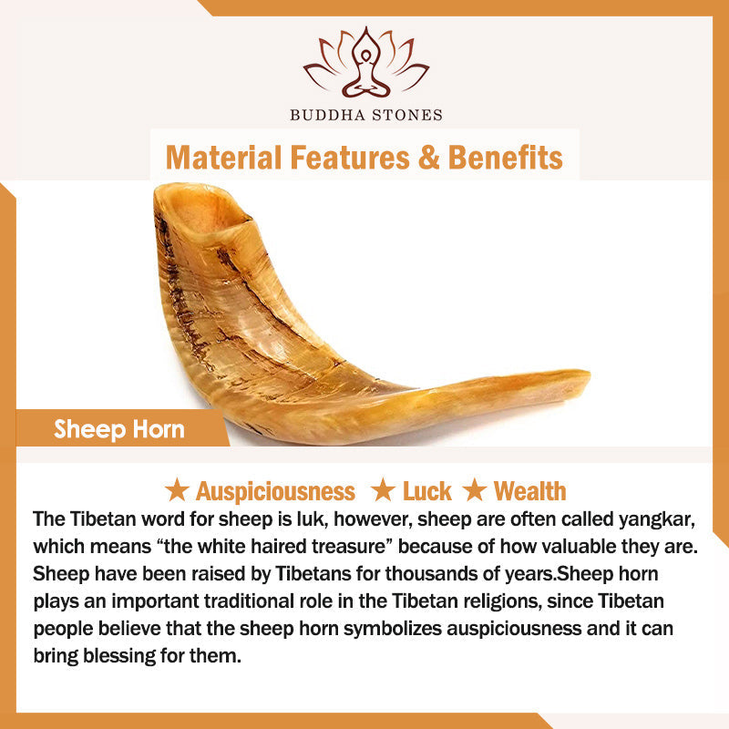 The Tibetan word for sheep is luk, however, sheep are often called yangkar, which means “the white haired treasure” because of how valuable they are. Sheep have been raised by Tibetans for thousands of years.Sheep horn plays an important traditional role in the Tibetan religions, since Tibetan people believe that the sheep horn symbolizes auspiciousness and it can bring blessing for them.