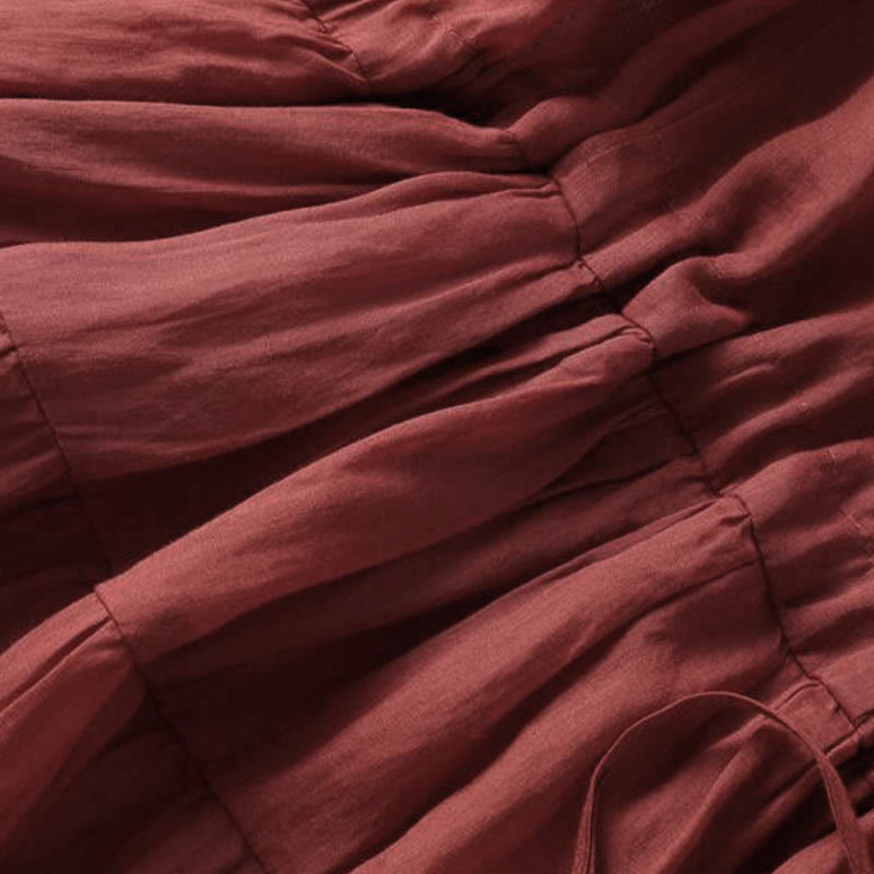 Buddha Stones Embroidery Patchwork Long Puff Sleeve Drawstring Midi Dress With Pockets