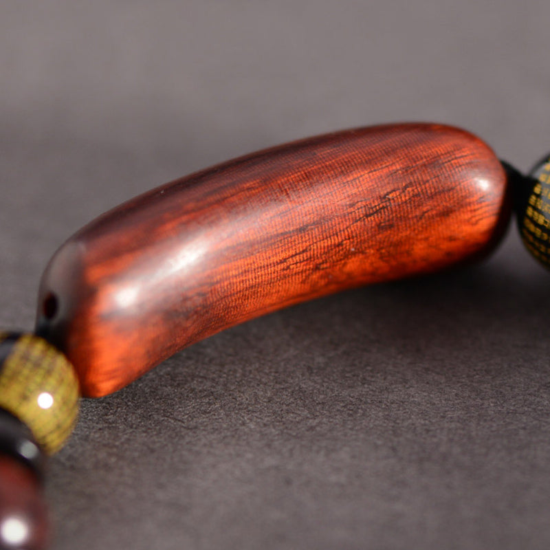 Buddha Stones Small Leaf Red Sandalwood Om Mani Padme Hum Engraved Protection Bracelet