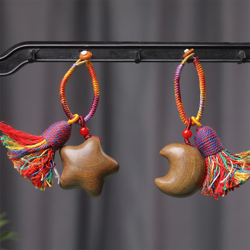 Buddha Stones Tibetan Colored Rope Green Sandalwood Star Moon Peace Key Chain