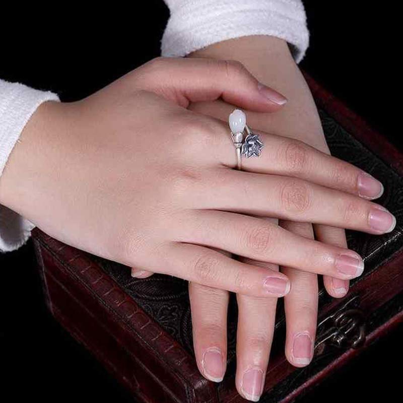 Buddha Stones Jade Lotus Copper Balance Healing Adjustable Ring
