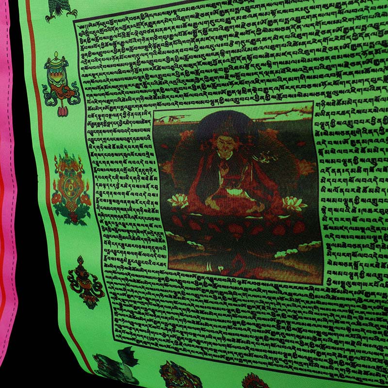 - Each flag features a large variety of prayers surrounding the center image of lungta, a Windhorse. Lungta is also the Tibetan word for 'prayer flag'. Circulates a feeling of Harmony and increases the Spiritual Atmosphere. It Brings Spiritual Vibration carried by the wind across the house.