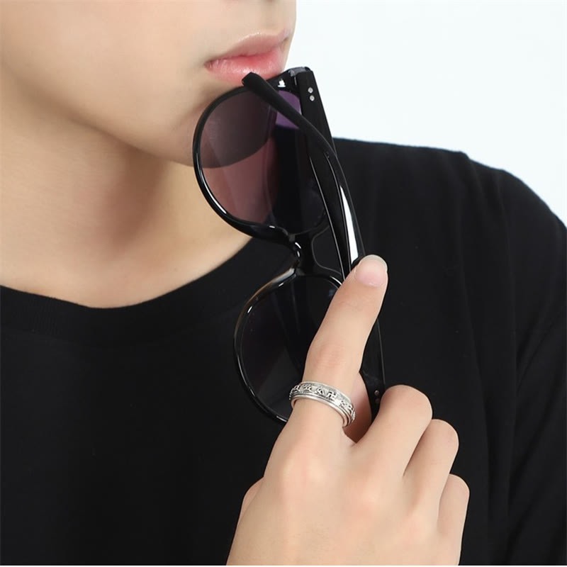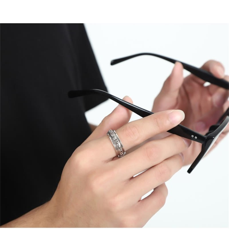Buddha Stones Tibetan Om Mani Padme Hum PiXiu Engraved Wealth Luck Rotatable Ring