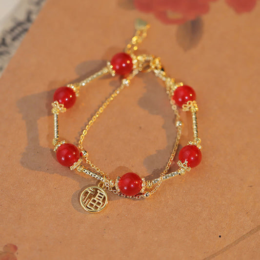 Buddha Stones Red Agate Fu Character Charm Self-acceptance Bracelet