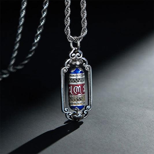 Buddha Stones Om Mani Padme Hum Copper Plated Silver Wealth Rotating Necklace Pendant