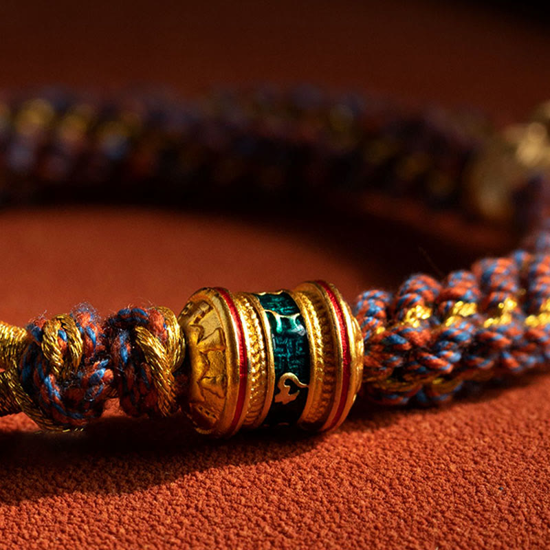 Buddha Stones 925 Sterling Silver Chinese Zodiac Natal Buddha Om Mani Padme Hum Luck Bell Braided String Bracelet