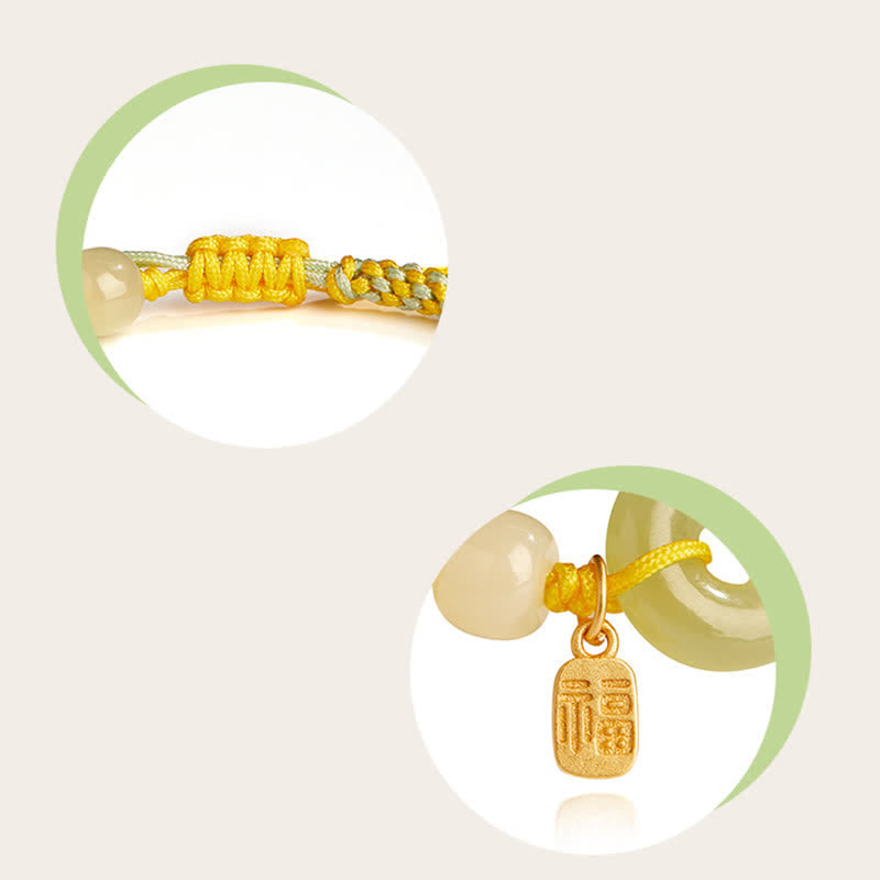 Buddha Stones 925 Sterling Silver Hetian Jade Peace Buckle Beaded Luck Happiness Charm Bracelet