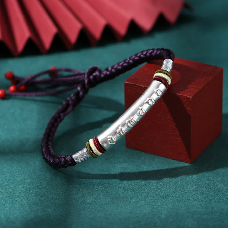 Buddha Stones 999 Sterling Silver Om Mani Padme Hum Protection Strength String Bracelet