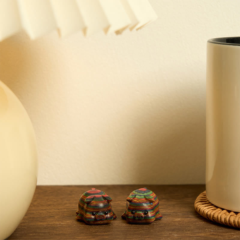 Buddha Stones 2Pcs Mini Rainbow Eucalyptus Pig Carved Positive Decoration
