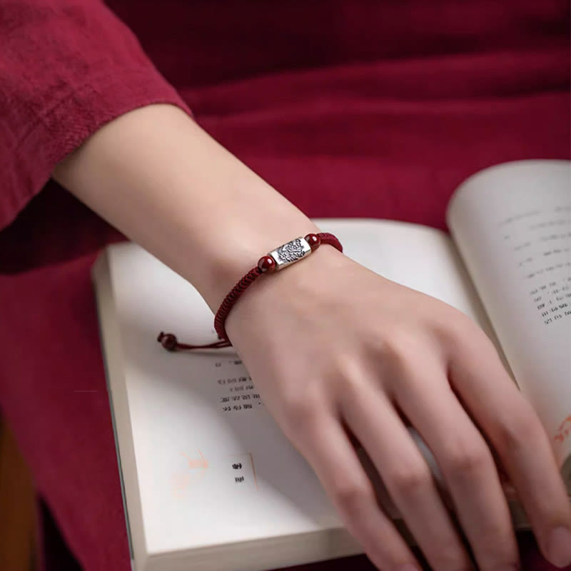 Buddha Stones 925 Sterling Silver 12 Chinese Zodiac Cinnabar String Bracelet