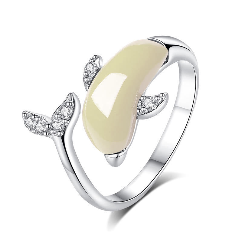 Buddha Stones 925 Sterling Silver Cute Dolphin Hetian Jade Red Agate Luck Necklace Pendant Ring Earrings Set