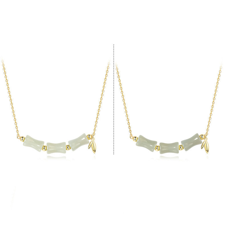 Buddha Stones 925 Sterling Silver Hetian Jade Bamboo Fu Character Prosperity Necklace Pendant Bracelet