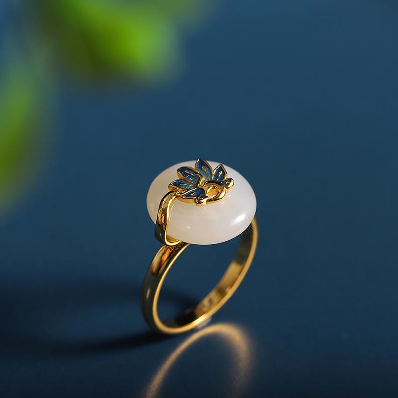 Buddha Stones 925 Sterling Silver Natural Hetian White Jade Peacock Blessing Necklace Pendant Ring Earrings Set