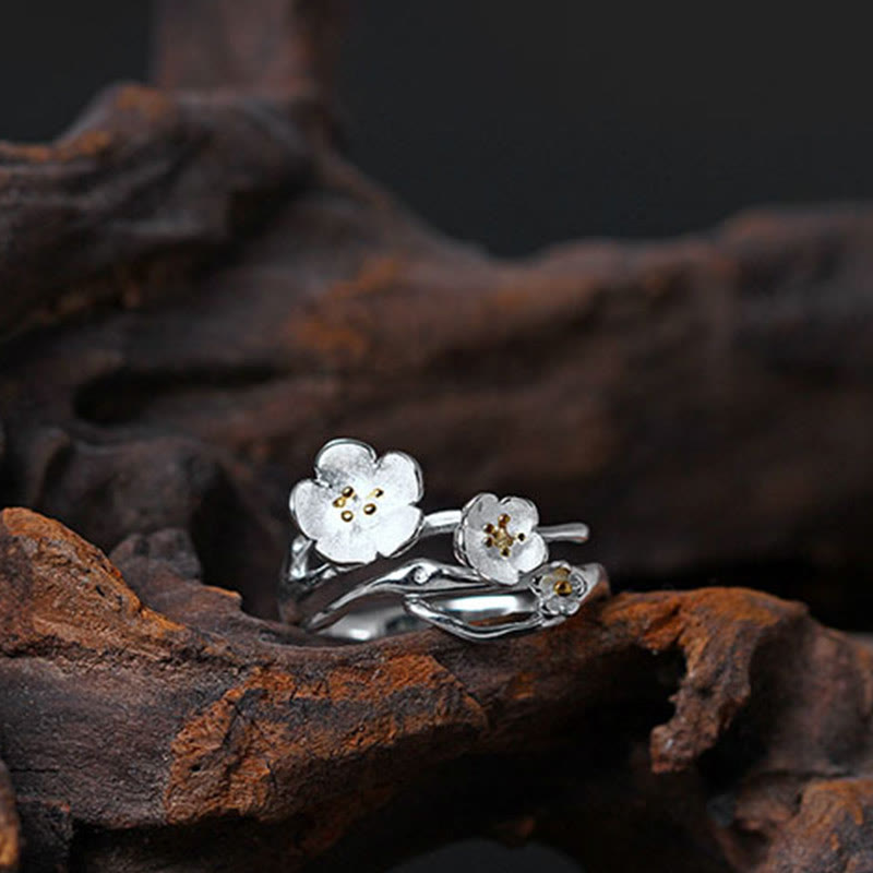 Buddha Stones 925 Sterling Silver Plum Bossom Balance Ring