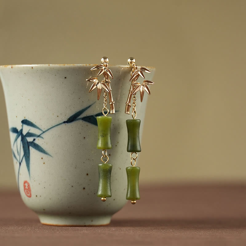 Buddha Stones 925 Sterling Silver Posts Copper Plated Gold Natural Peridot Bamboo Leaf Drop Earrings