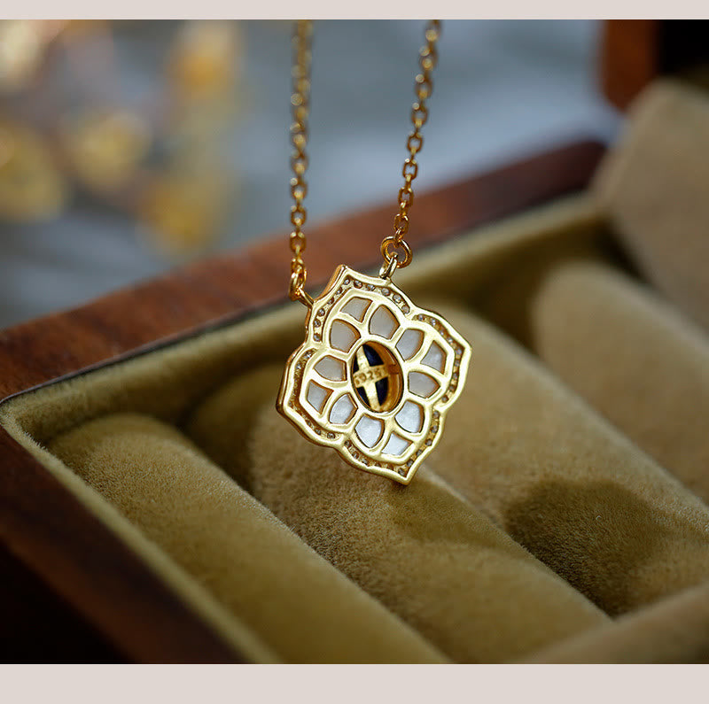 Buddha Stones 925 Sterling Silver Tridacna Stone Lazurite Prismatic Design Blessing Earrings Necklace Pendant Jewelry Set