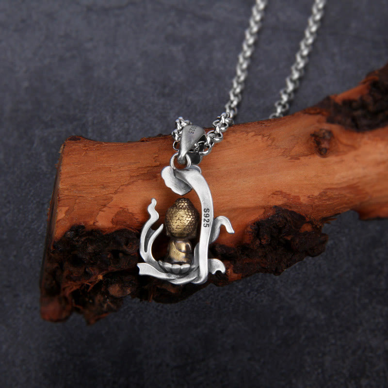 Buddha Stones 925 Sterling Silver Zen Buddha Ruyi Handle Compassion Necklace Pendant