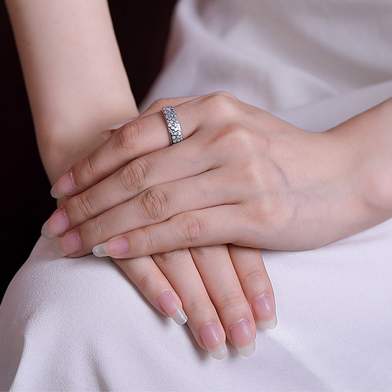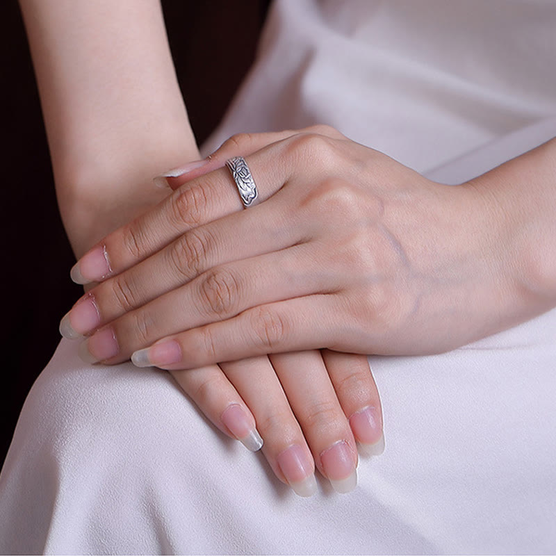 Buddha Stones 999 Sterling Silver Lotus Flower Plum Blossom Auspicious Clouds Engraved Enlightenment Ring