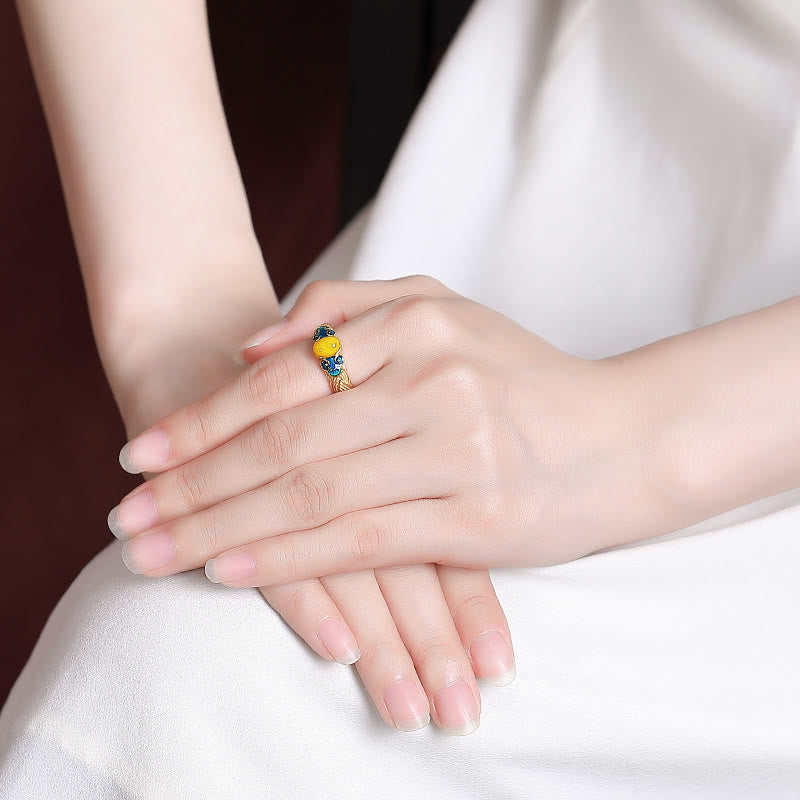Buddha Stones Amber Copper Auspicious Clouds Focus Adjustable Ring