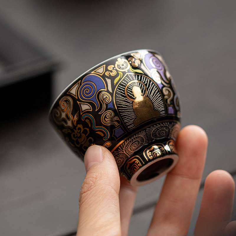 Buddha Stones Black Thangka Buddha Auspicious Clouds Teacup Kung Fu Tea Cup