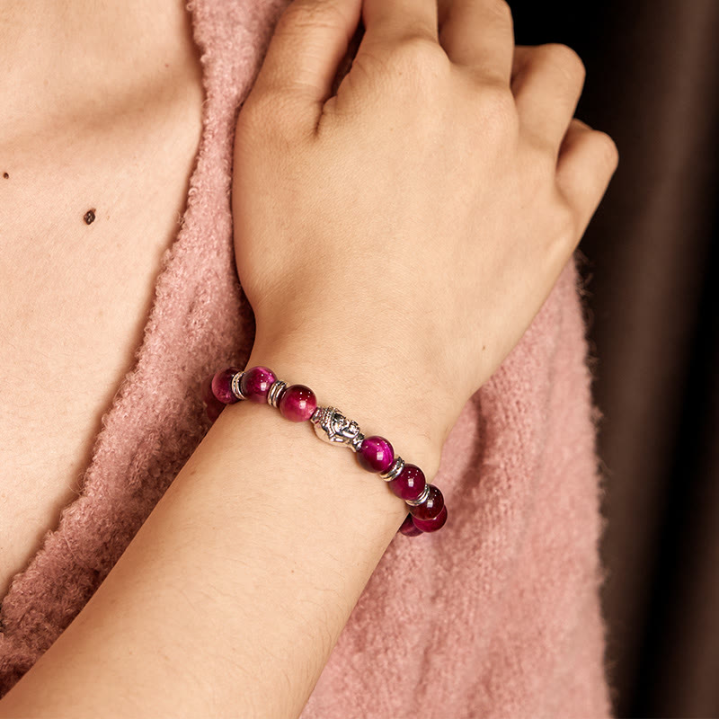 Buddha Stones Blue Green Red Tiger Eye Buddha Head Balance Bracelet