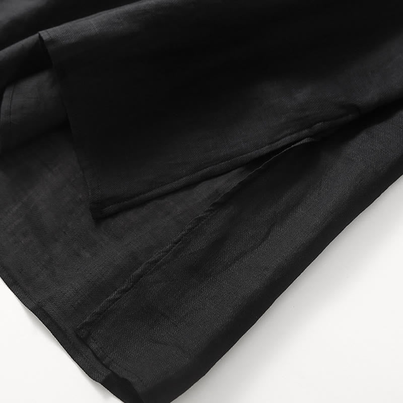 Buddha Stones Casual Embroidery Split Three Quarter Sleeve Cotton Linen Midi Dress