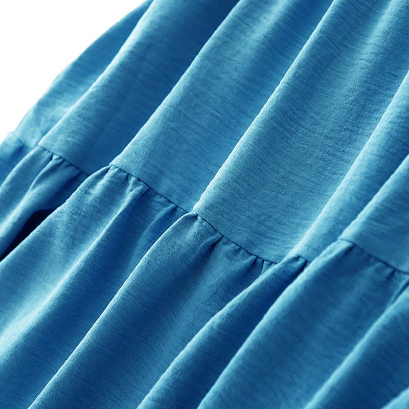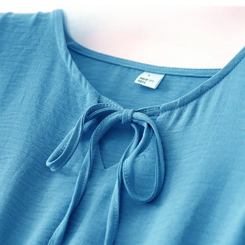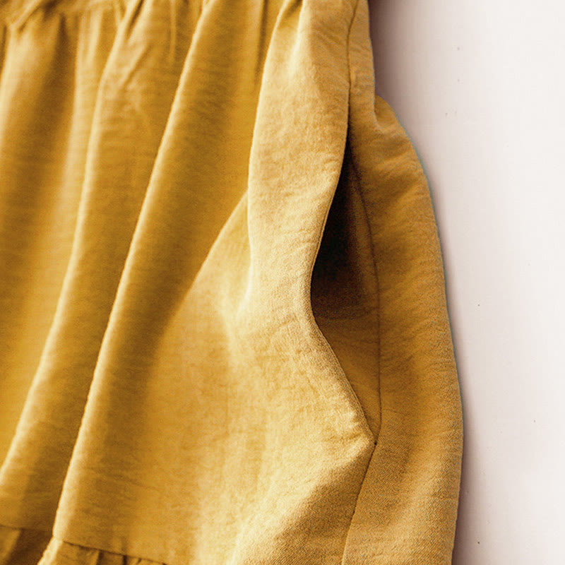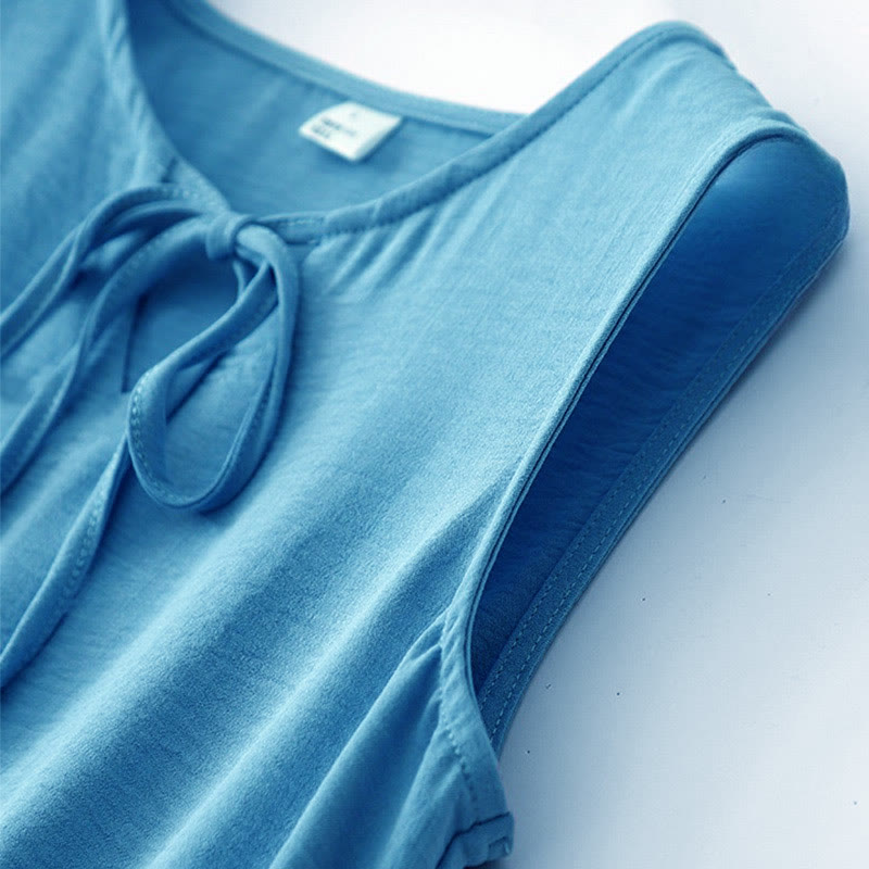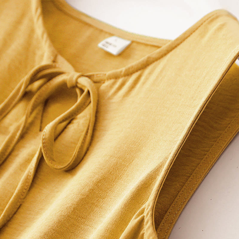Buddha Stones Casual Plain Handmade Lace-up Midi Dress Cotton Linen Sleeveless Dress With Pockets