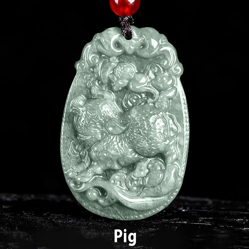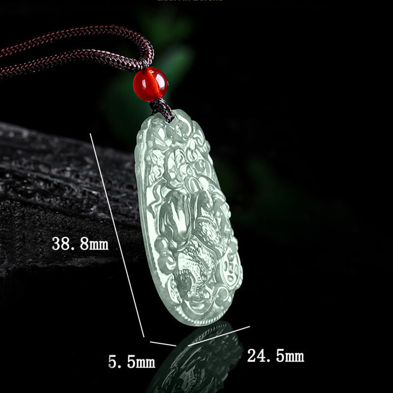 Buddha Stones Chinese Zodiac Jade Year of the Horse Luck Rope Necklace Pendant
