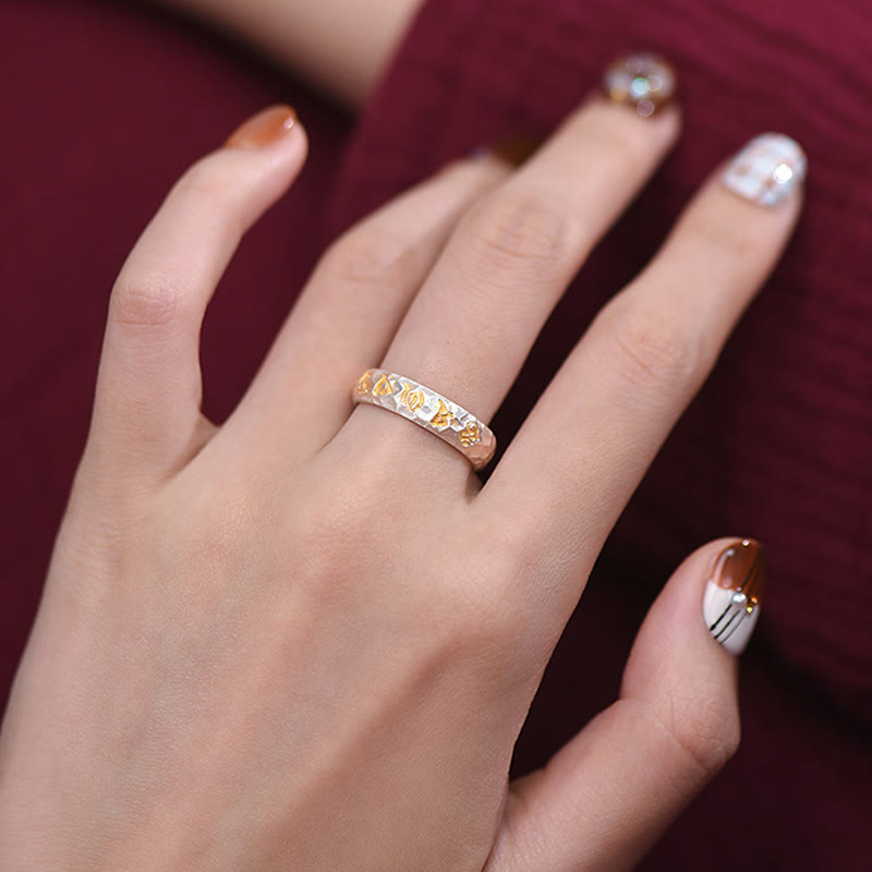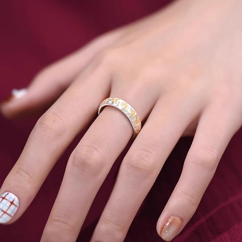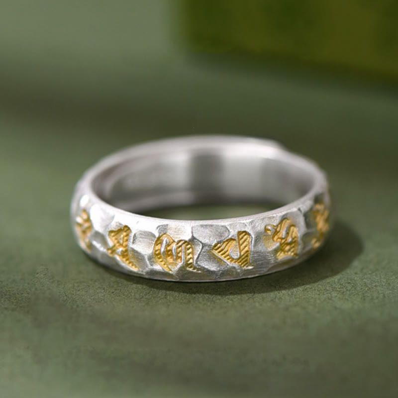 Buddha Stones Hammer Pattern Om Mani Padme Hum Copper Plated Silver Wealth Ring